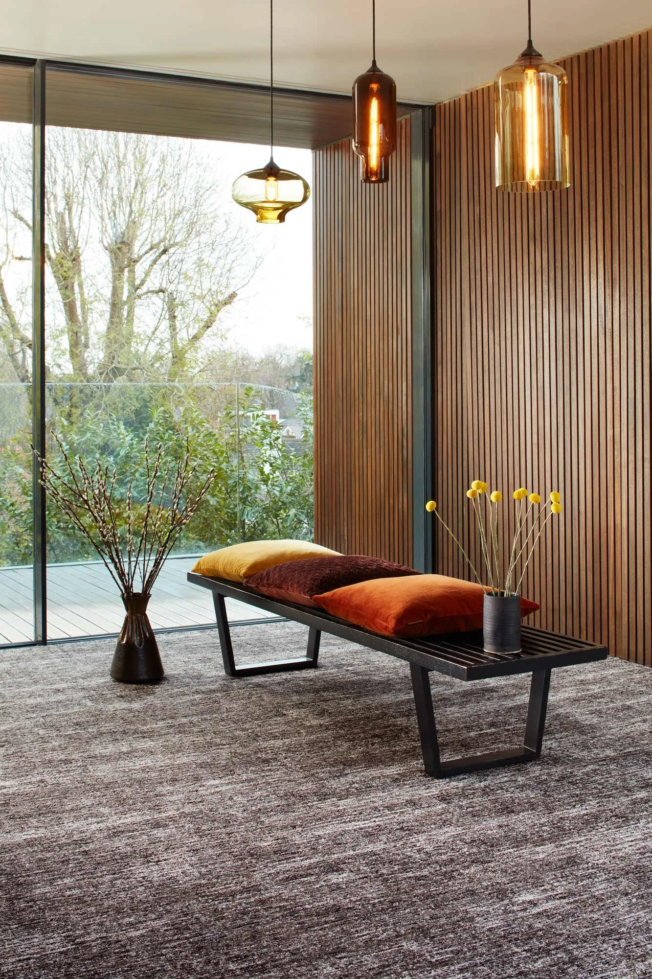 Designerens inspirasjon bak Modern Movement-kolleksjonen: Rene, enkle linjer utgjør et moderne mønster og krysser den åpne gulvflaten med en raffinert selvtillit. Arkitektonisk presisjon integrerer naturens skjønnhet for å bringe utsiden inn, som gir uventede effekter. Strømlinjeformet estetikk, kombinert med luksus og rike dimensjoner av tekstur, er hjertet til denne kolleksjonen.